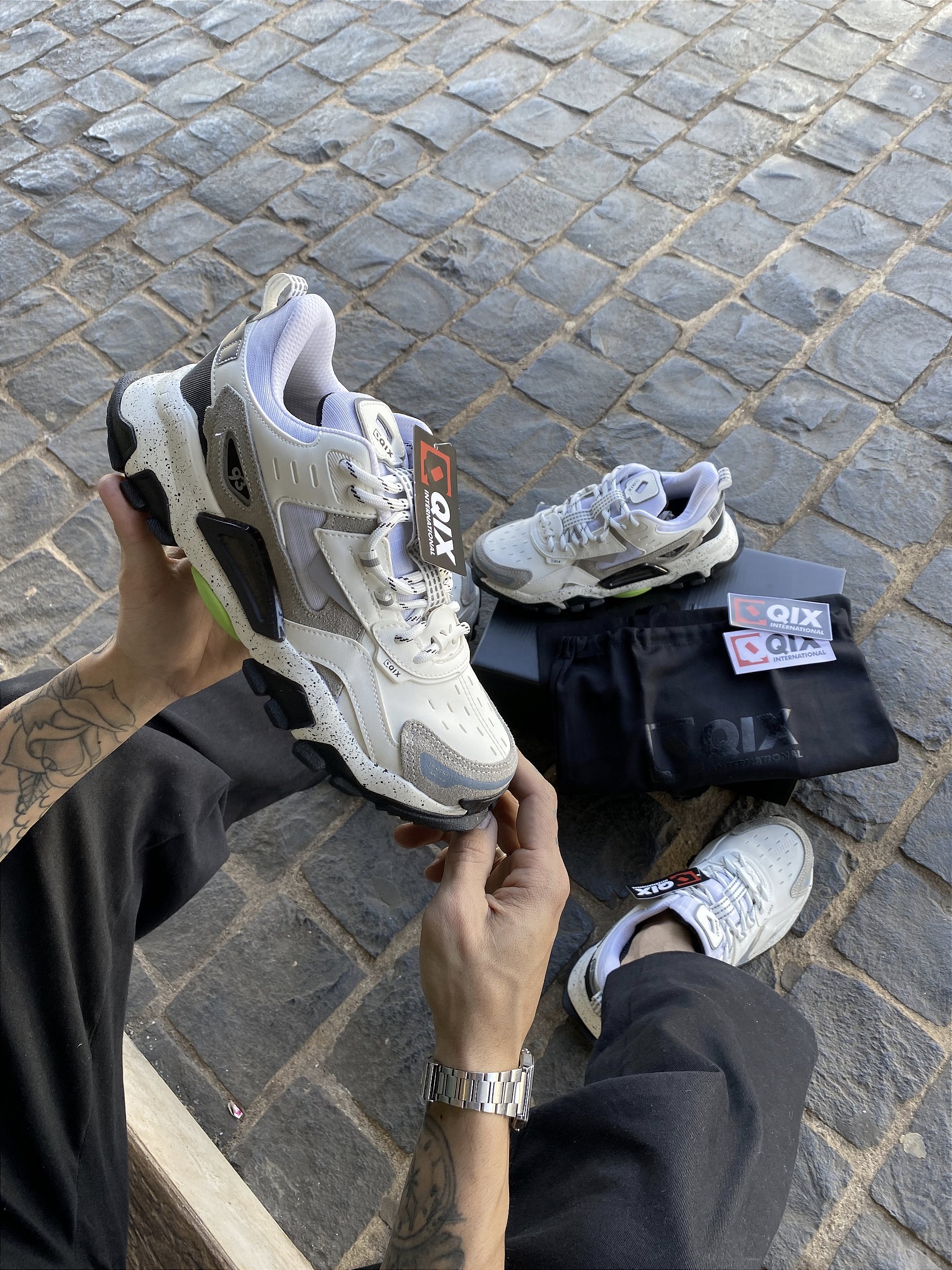 O TÊNIS TREK QIX é um super lançamento da marca, remete em um único tênis a expressão máxima de estilo e moda sem fugir dos conceitos e história do que representa a marca QIX.