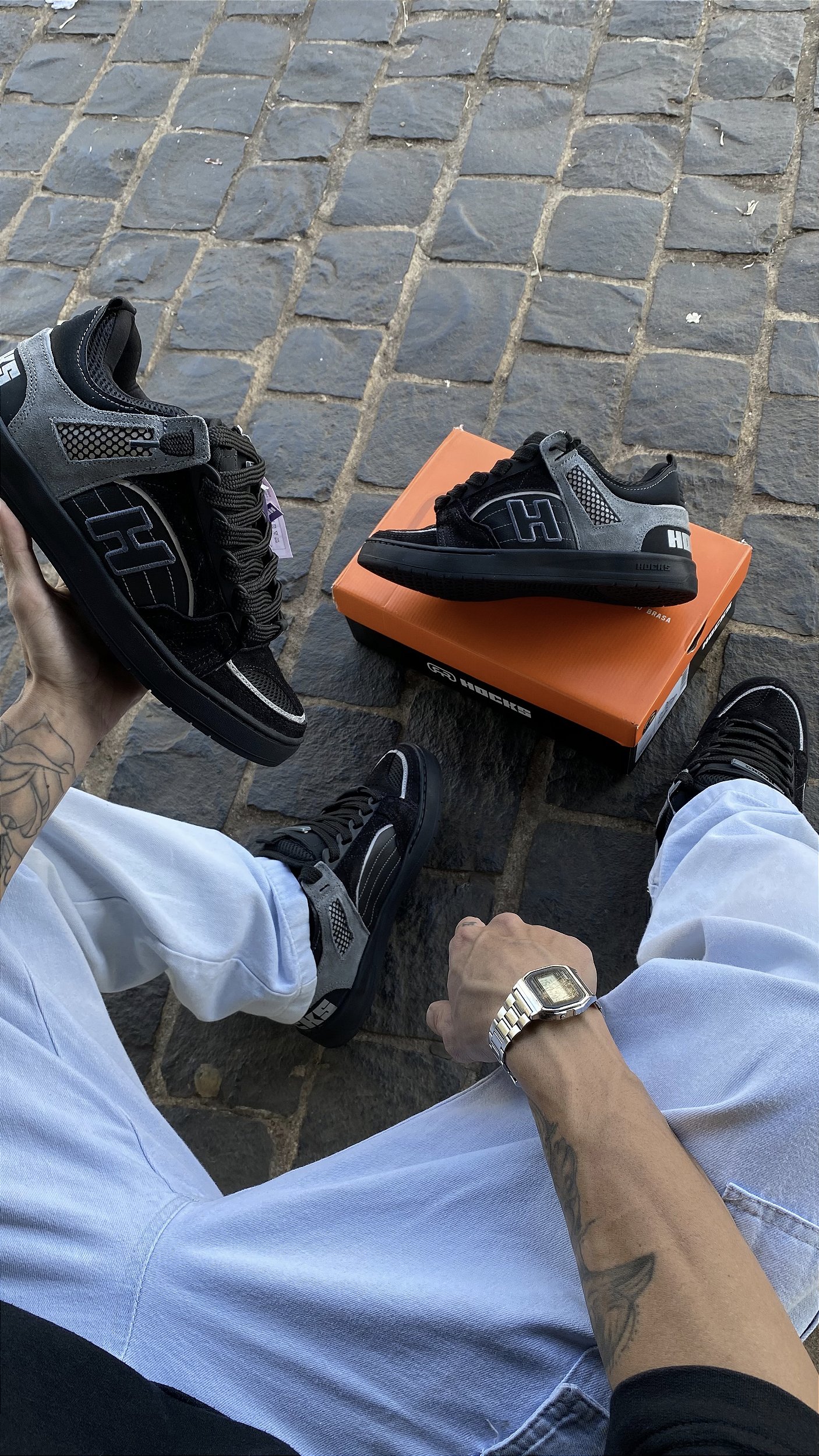 É hora de voltar ao passado e viver a essência do skate. O Hocks Bold da linha vivência é um modelo que combina estilo, conforto e uma incrível inspiração nas clássicas silhuetas dos anos 2000. São mais de 90 peças na sua construção combinando diversos materiais e acabamentos para criar uma estética única e um visual urbano. Cabedal em suede natural com detalhes refletivos, lingueta com bolso mocado, calcanhar conformado e super acolchoado, cadarço fatlace + passadores em T.P.U, solado com duas costuras de borracha + costura de blaque, palmilha FlexForm em P.U termo conformado proporcionando maior conforto e memória.