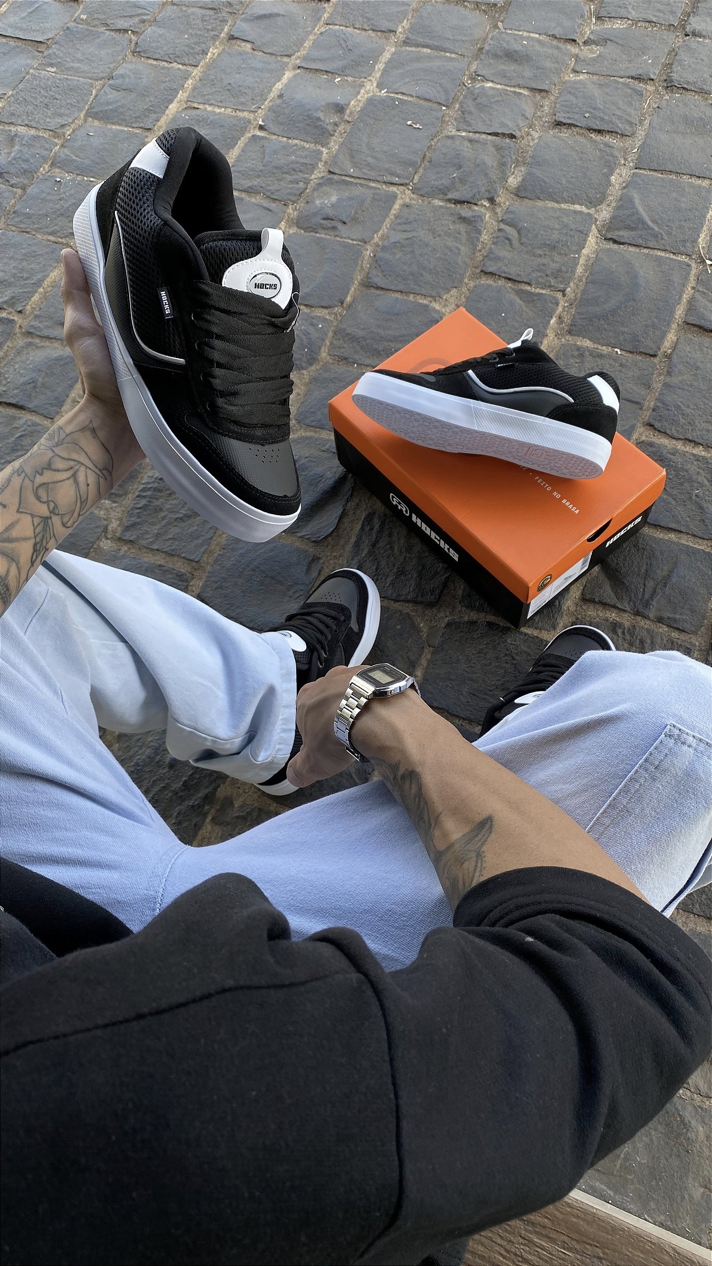 O Puff vem para saciar um desejo dos nossos skatistas pelo resgate das icônicas silhuetas do início dos anos 2000. A inspiração também está no DNA da Hocks, criada no auge dessa época. Apresenta cabedal em suede natural e sintético com mesh dupla frontura 100% poliéster. Possui costuras duplas, novos cadarços fat lace, traseira e lingueta acolchoado, fachete e soleta em borracha natural e palmilha FlexForm* em P.U.